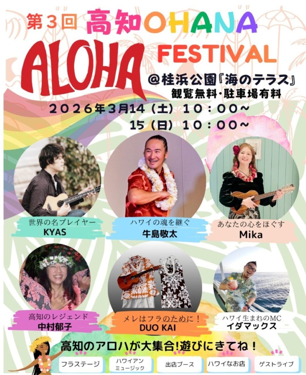 - 【3/14,15】高知市の桂浜公園で「第3回高知オハナアロハフェスティバル」