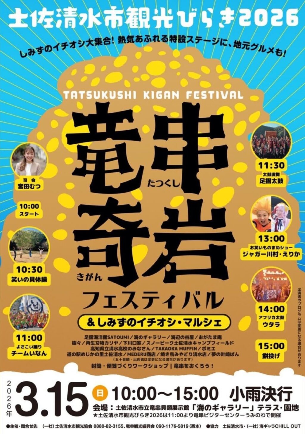- 【3/15】土佐清水市の海のギャラリーで「竜串奇岩フェスティバル」&「しみずのイチオシ・マルシェ」