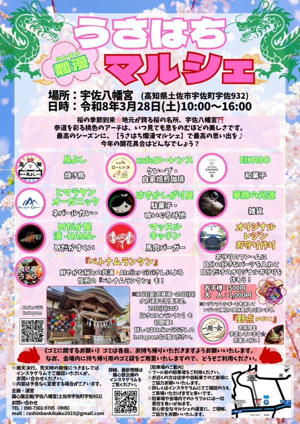 - 【3/28】土佐市の宇佐八幡宮で「うさはち爛漫マルシェ」