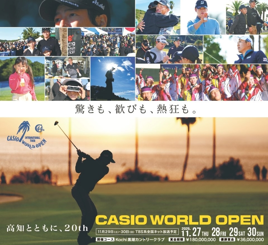 男子プロゴルフツアー「カシオワールドオープン」が 2025 年も 11 月 27 日(木)に、芸西村のKochi黒潮カントリークラブで始まりました。30 日(日)までの 4 日間、トッププロたちによる熱いプレーが繰り広げられます。