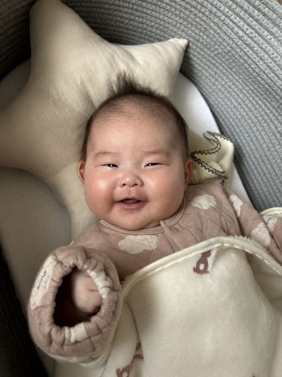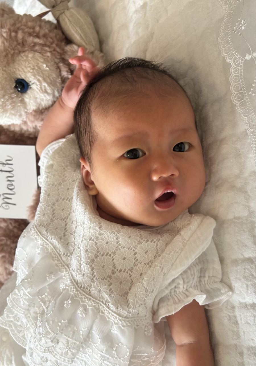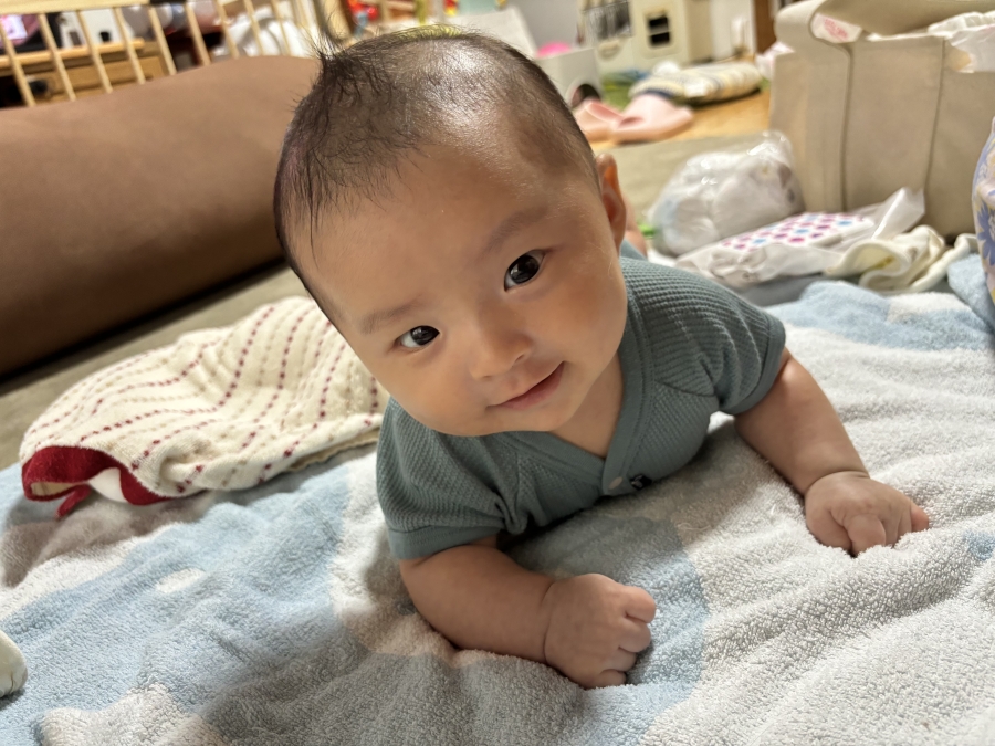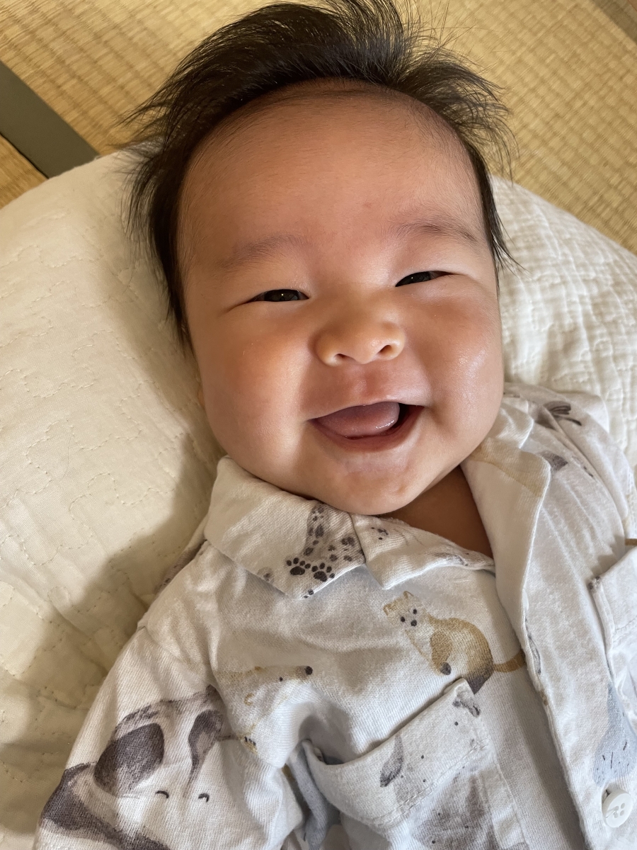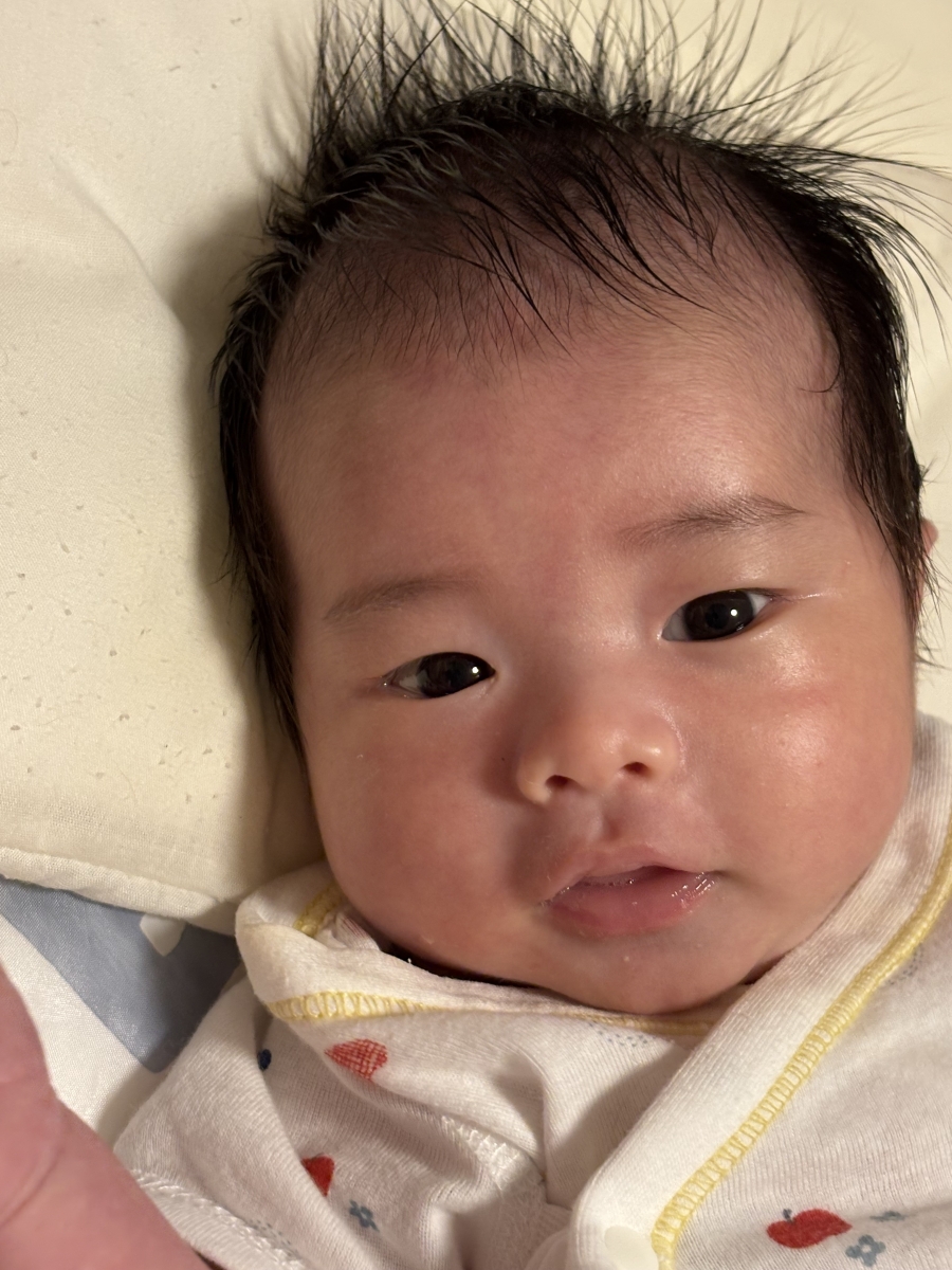 名前の由来:候補の中から、お姉ちゃんたちに選んでもらいました。聡明(そうめい)で落ち着いていて、自ら道を切り開き進んでいける人になりますように。