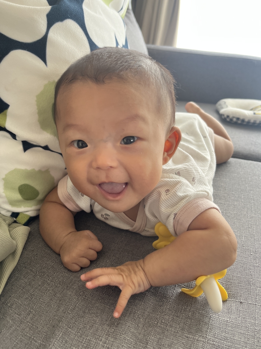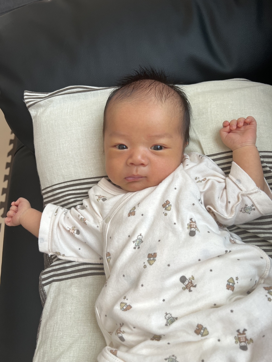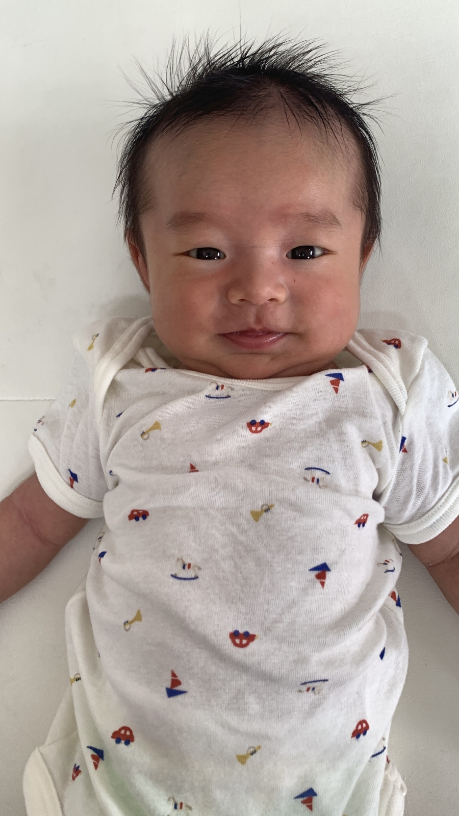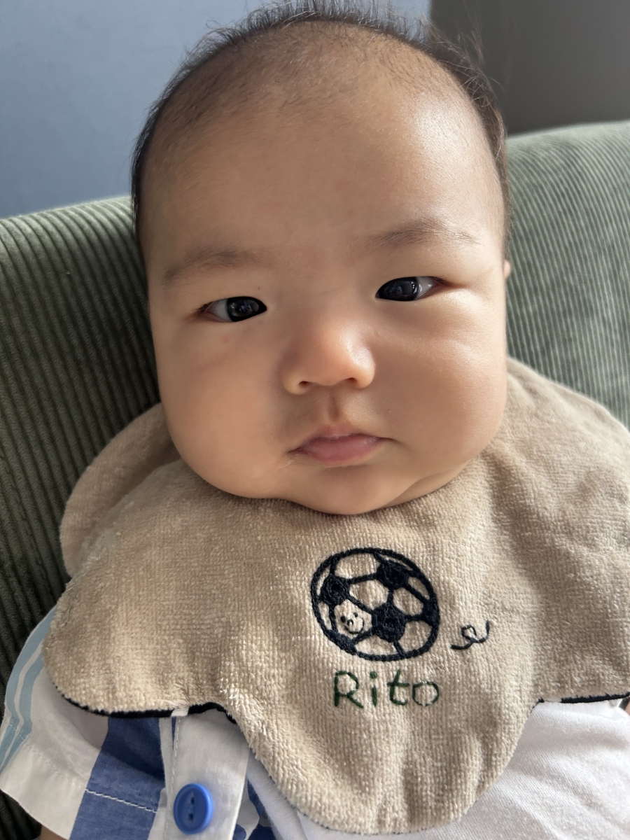 名前の由来:梨の花言葉は愛・愛情。「自然体で愛のある男の子になってほしい」。そんな意味を込めて梨然になりました。