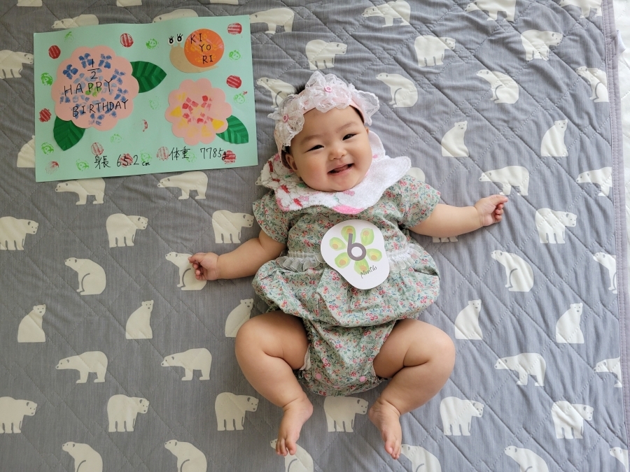 メッセージ:生まれてきてくれてありがとう。毎日元気な笑顔に癒やされています。