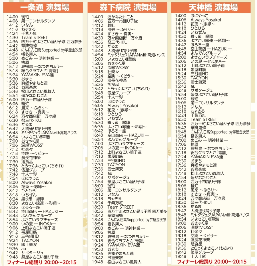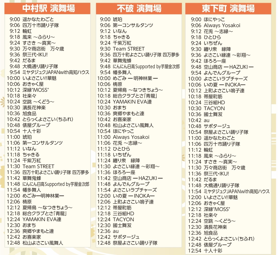 ※参加チーム一覧、各演舞場のスケージュール、四万十ひのきの花メダルなどについてはこの記事下の「詳細情報」をご覧ください。 |