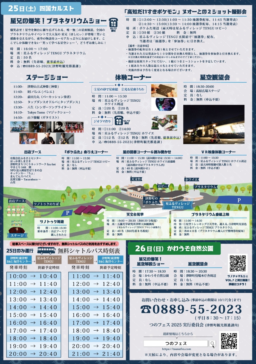 津野町で 2025 年 10 月 25 日(土)、26 日(日)、「つのフェス 2025 ~星を好きになる 2 日間~」が開かれます。