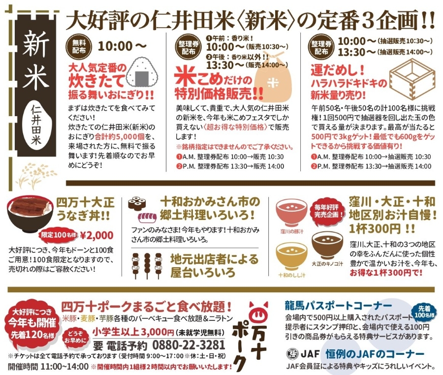 当日は、仁井田米の新米を特別価格で購入できます。「運だめし!ハラハラドキドキの新米量り売り!」もあります。