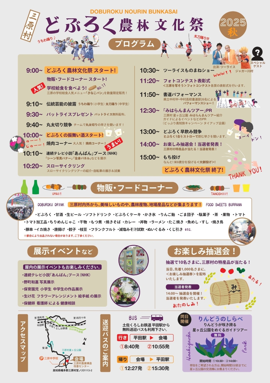 | 運営 | 主催:三原村どぶろく・農林文化祭実行委員会 |