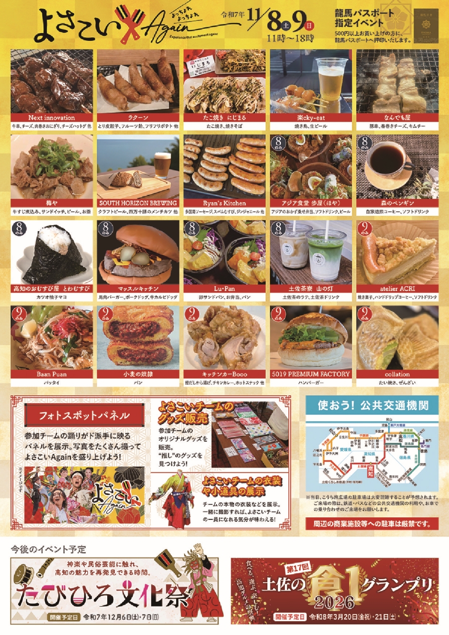 高知市北本町 2 丁目のこうち旅広場で 2025 年 11 月 8 日(土)、9 日(日) 、「よさこいAgain(アゲイン)」が開かれます。