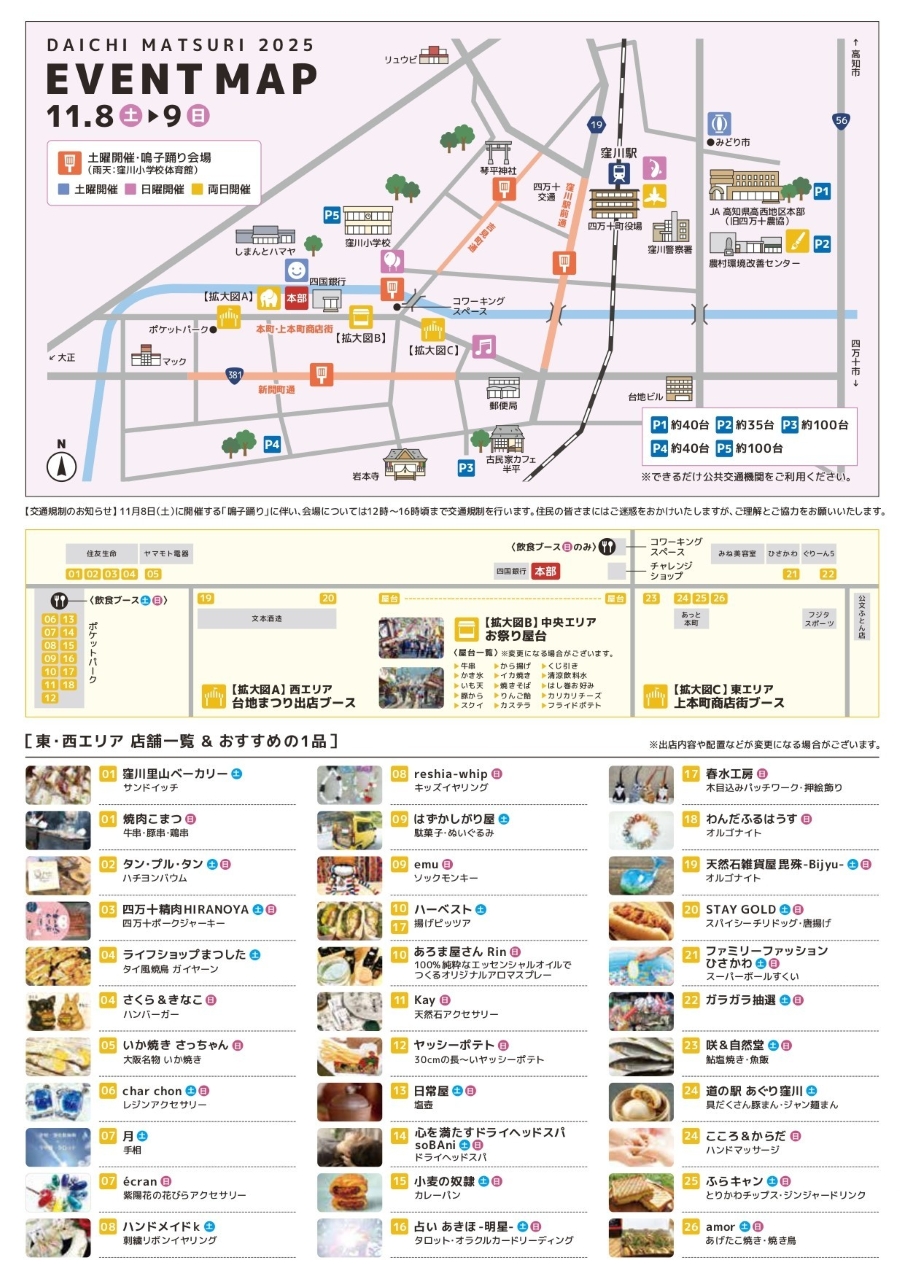 四万十町の窪川市街地で 2025 年 11 月 8 日(土)、9 日(日)、「第 50 回台地まつり 2025」が開かれます。