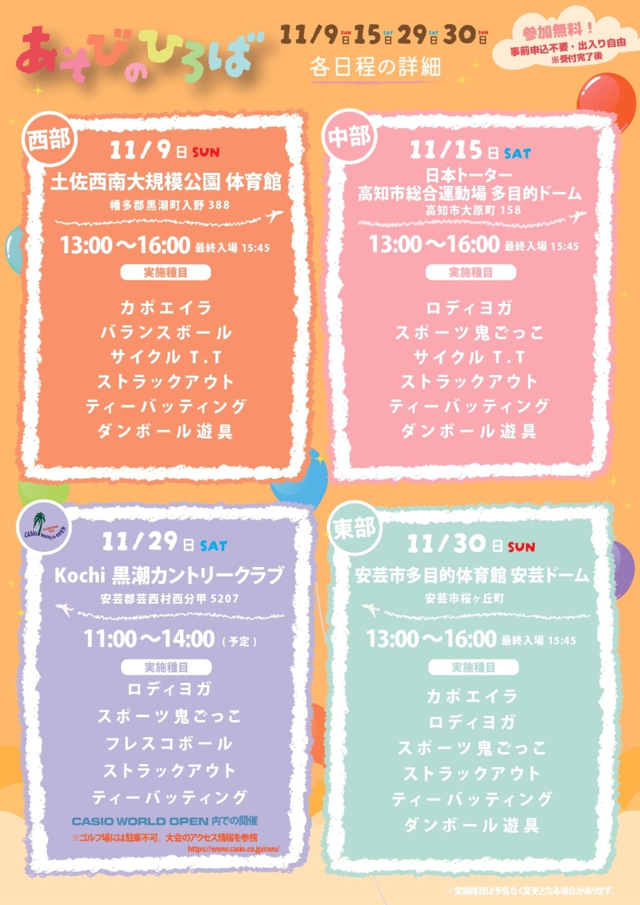 【2025年】黒潮町、高知市、芸西村、安芸市で「あそびのひろば」|ティーバッティング、ストラックアウト、スポーツ鬼ごっこ…4会場でスポーツや遊びを体験!