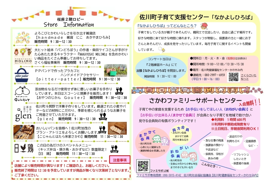 運営 主催:佐川町子育て支援センター、さかわファミリーサポートセンター