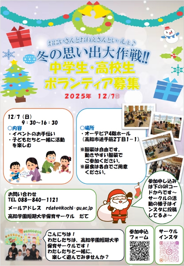 電話番号 088-840-1121(高知学園短期大学保育サークル・伊達さん)