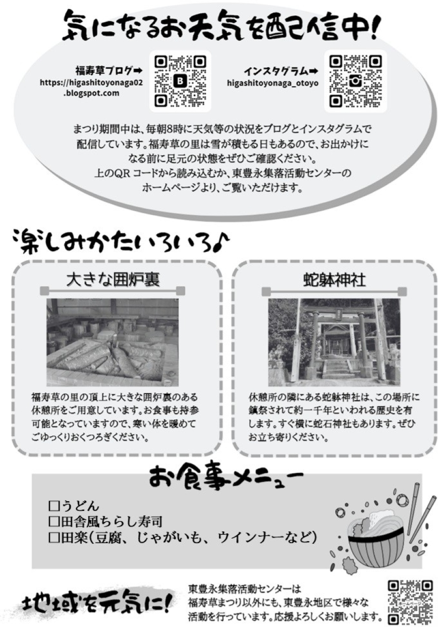 | 電話番号 | 090-8972-6225(福寿草を育てる会:氏原さん) |