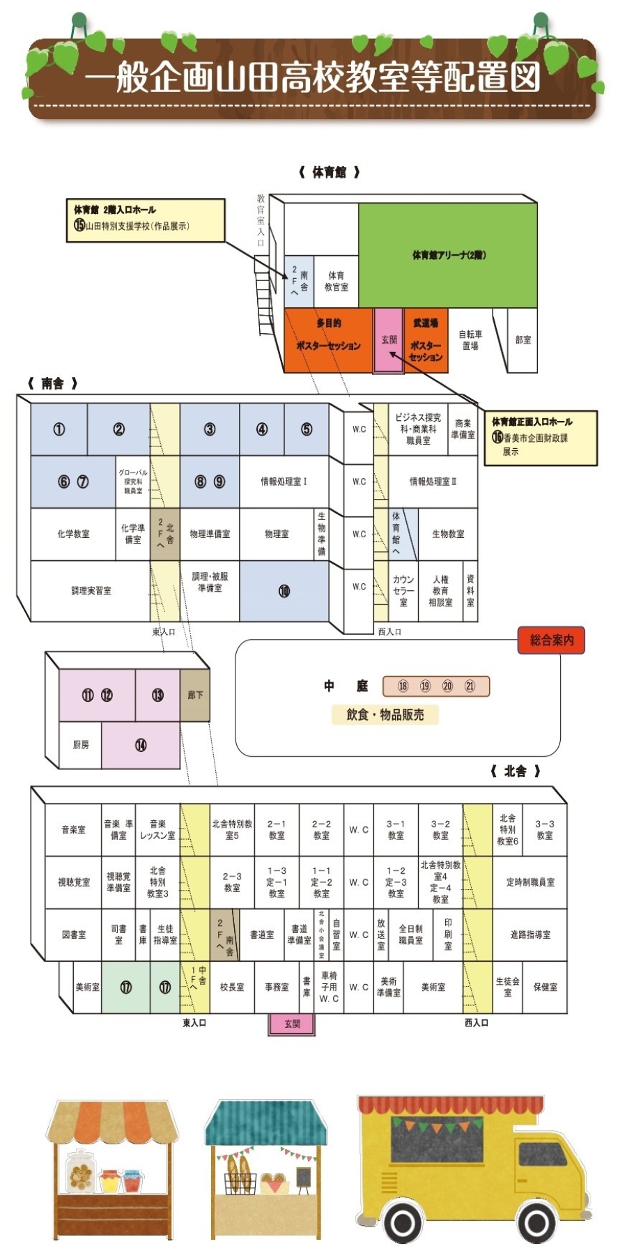 メイン会場の山田高校では舞台発表のほか、体験コーナーや講座などが予定されています。