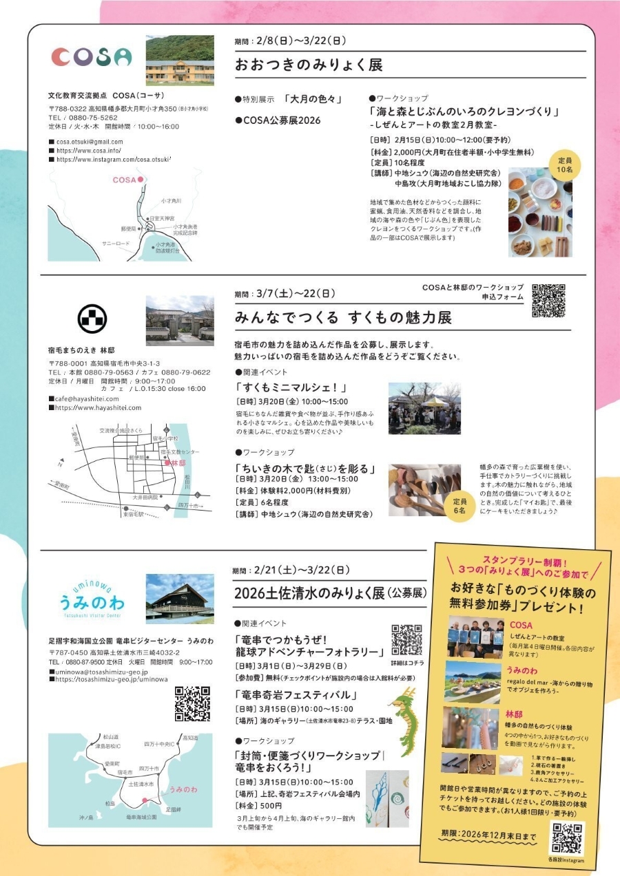 【2026年】大月町、土佐清水市、宿毛市で「みりょく展」|地域の魅力を伝える作品を展示。ワークショップも楽しめます