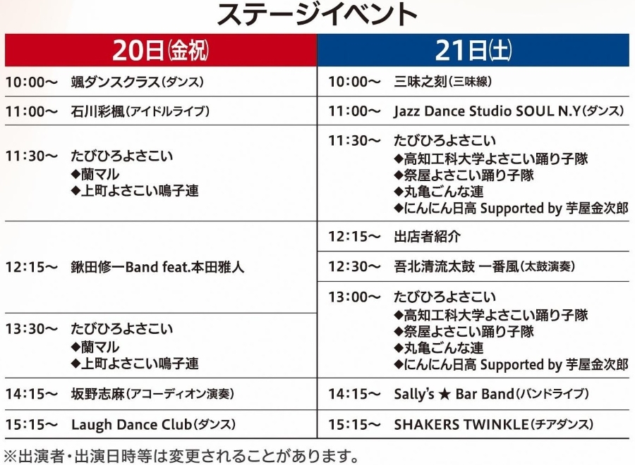 • 投票券配布時間:20 日(金・祝)10:00~15:00、21 日(土)10:00~14:30