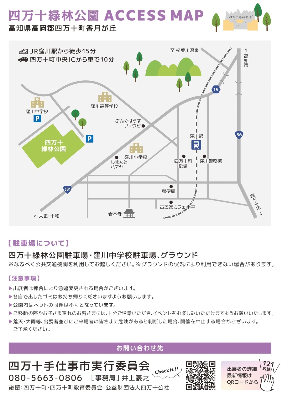 | 電話番号 | 080-5663-0806(四万十手仕事市実行委員会事務局) |