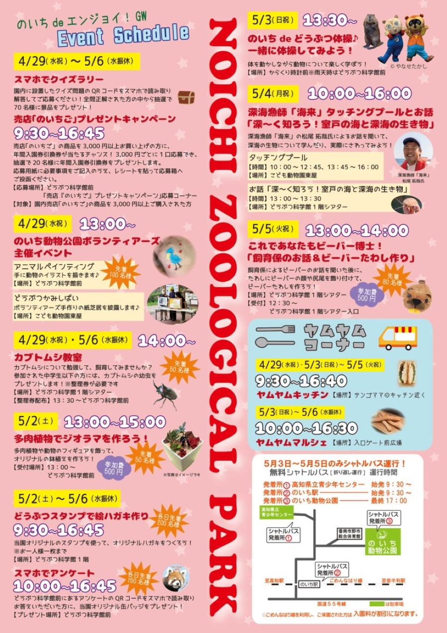 【2026年】香南市で4/29~5/6に「のいち de エンジョイ! GW 2026」(高知県立のいち動物公園)|カブトムシ教室、ワークショップ、グルメが楽しめます