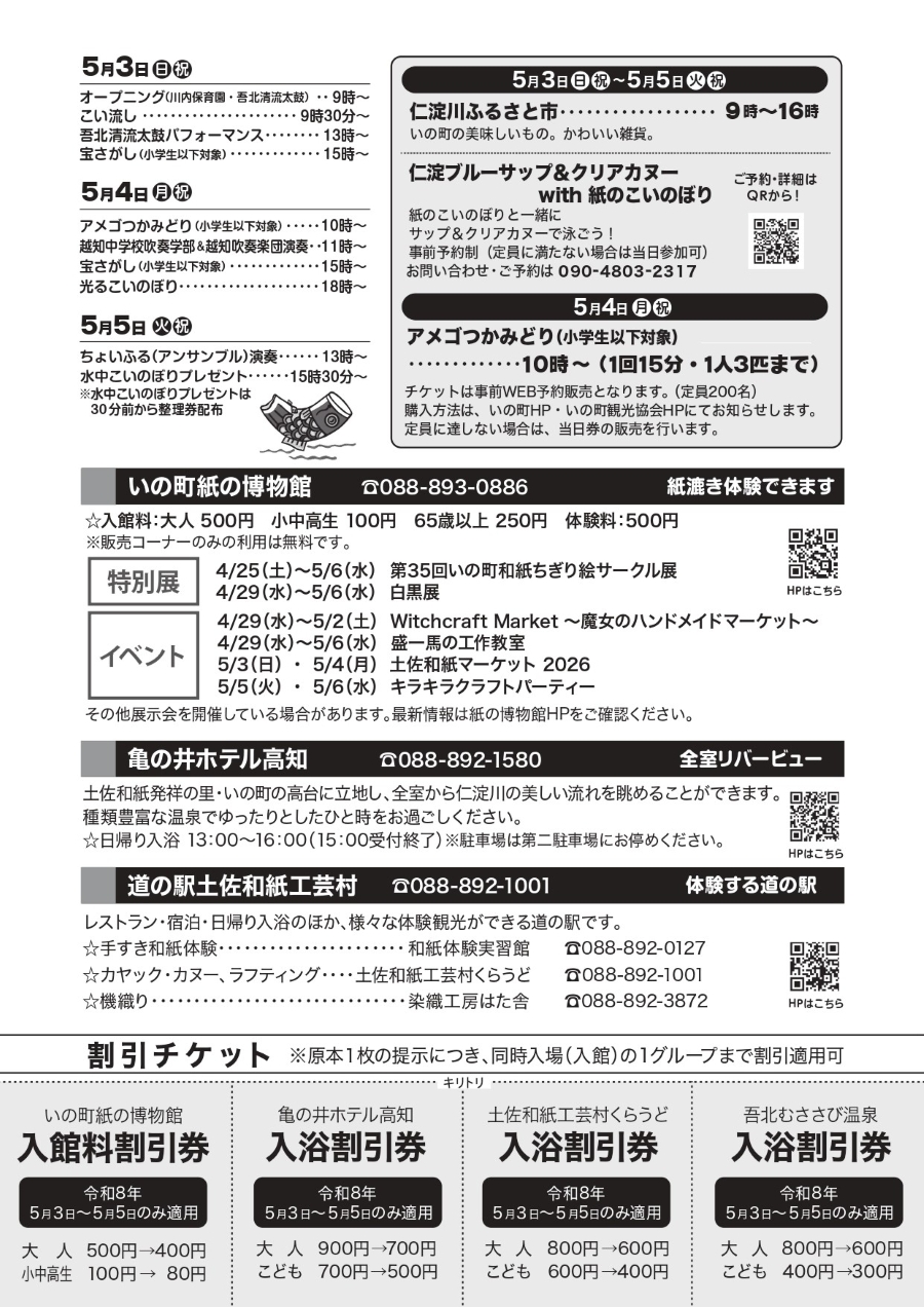 いの町の波川公園周辺で 2026 年 5 月 3 日(日・祝)~5 日(火・祝)、「第 30 回仁淀川紙のこいのぼり」が開かれます。