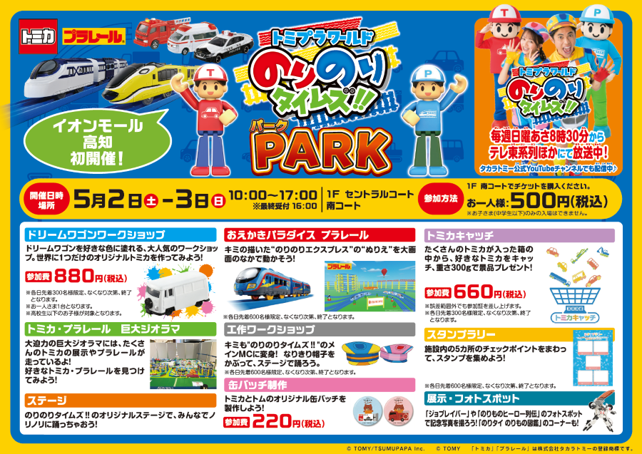 5 月 2 日(土)、3 日(日)はトミカイベント「トミプラワールド のりのりタイムズ!!PARK」に参加できます。