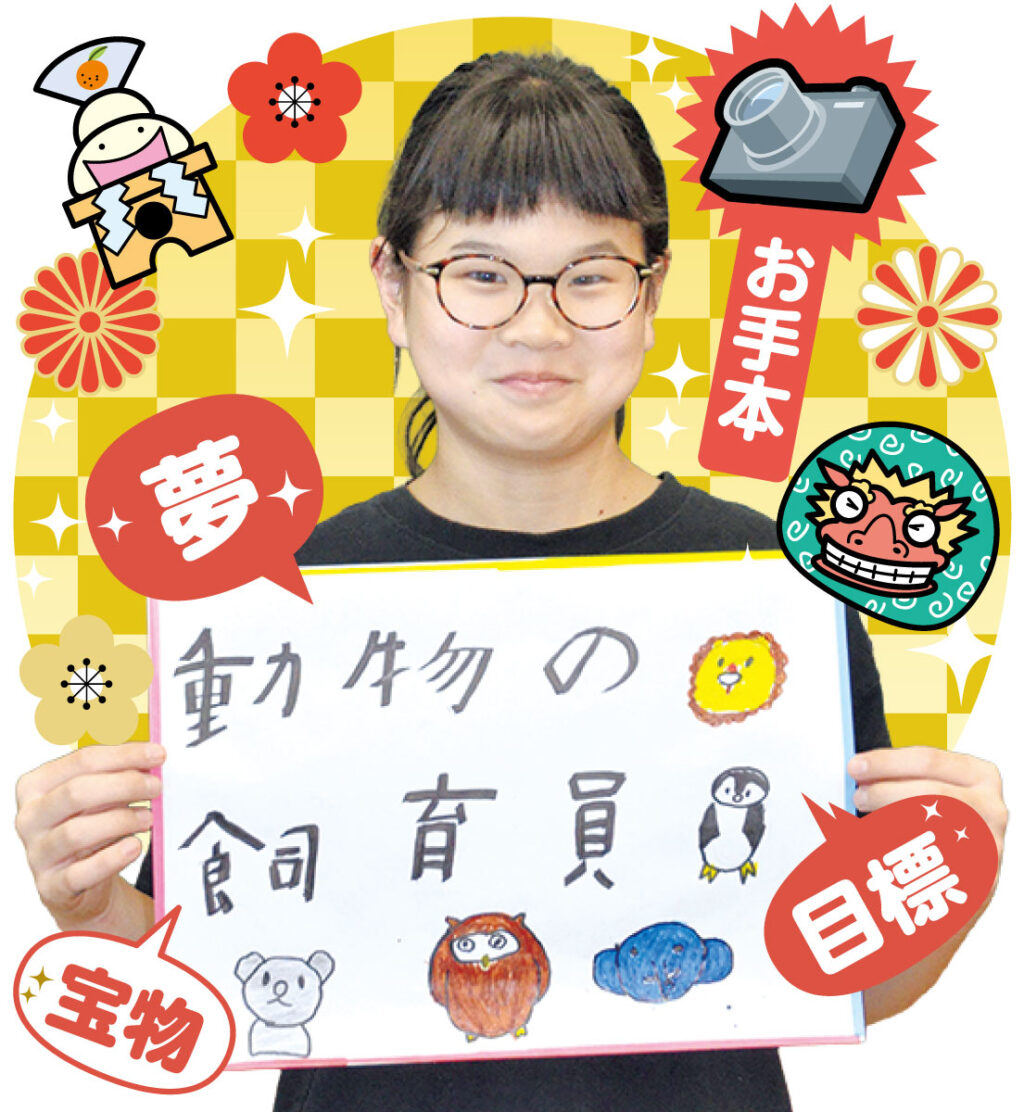 「2026年の目標」「私の夢」「私の宝物」どれか一つを書いた紙を持って撮影してください