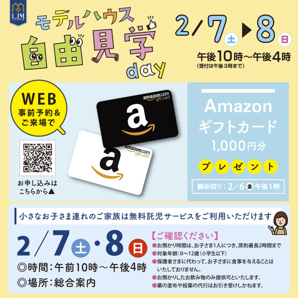 住宅メーカーの声かけ・アンケートなし!託児付きの「モデルハウス自由見学day」(高知新聞住宅総合展示場ライム)|周りを気にせずたくさん見学できます!事前予約で「Amazonギフトカード」プレゼント〈PR〉